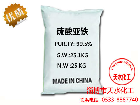 性能:暗淡藍綠單斜晶系晶體性粉末或顆粒。無臭,具有咸的收斂味。在干燥空氣中會風化,在潮濕空氣中易氧化成棕黃色堿式硫酸鐵。易溶于水,不溶于乙醇。